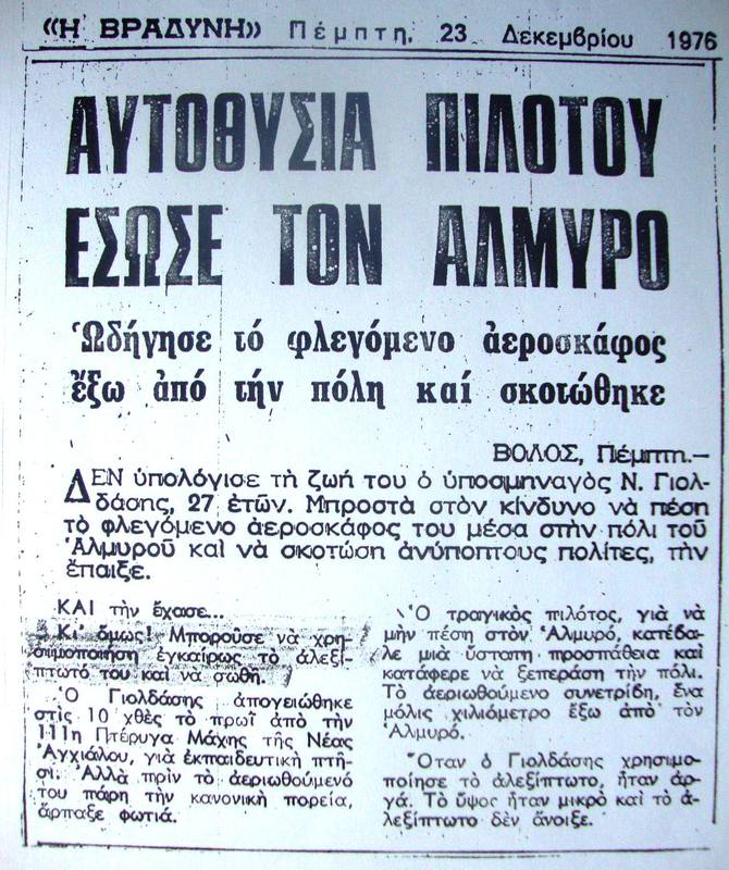 Δημοσιευμα της εφημερίδας ΒΡΑΔΥΝΗ την επόμενη μέρα του τραγικού συμβάντος