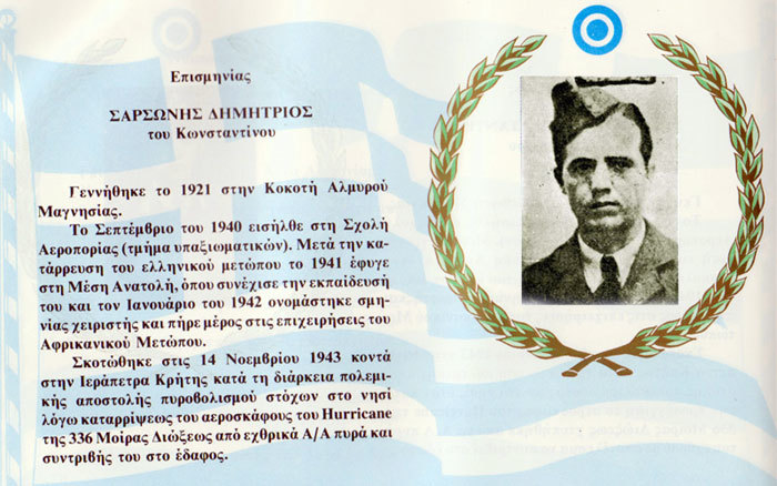 Οδός Αεροπόρου Αριστ. Παππά: Ο Αριστοφάνης Παππάς γεννήθηκε στον Αλμυρό το 1917. Μετά τις σπουδές του, φοίτησε στη Σχολή Εφέδρων Αξιωματικών Σύρου και ειδικεύτηκε σαν «βομβαρδιστής-παρατηρητής» αεροπόρος. Επιστρατεύθηκε με την κήρυξη του πολέμου του ’40 και βρέθηκε στη μονάδα αεροπορίας που έδρευε στις Μικροθήβες.