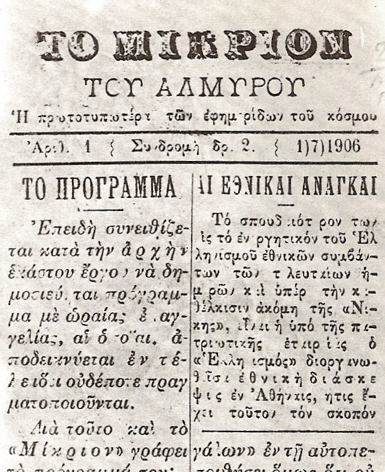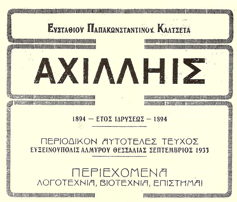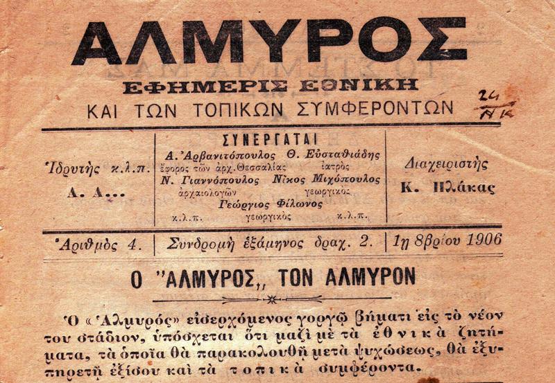 Αργυρόπουλος Δημήτριος, «Επαρχία Αλμυρού», άρθρο στα «Θεσσαλικά Χρονικά», 1935.